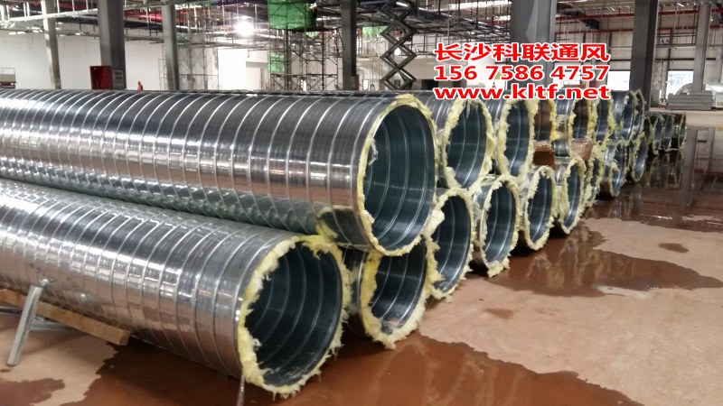2、使用内外两层螺旋风管,中间加入玻璃棉作保温。